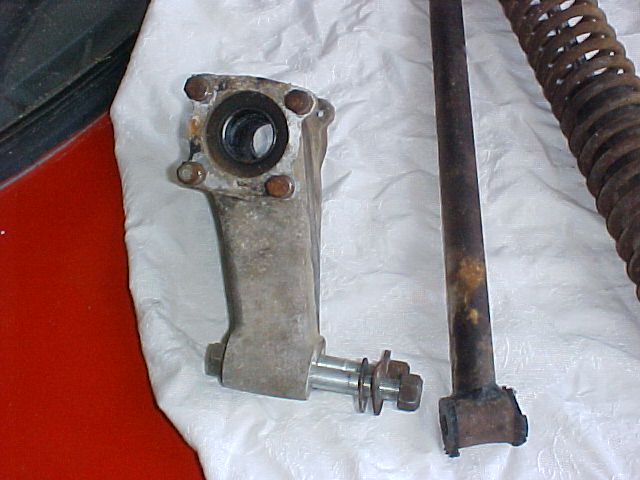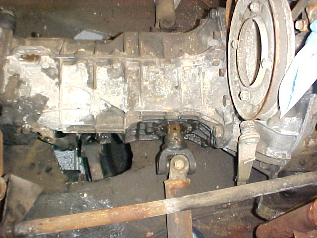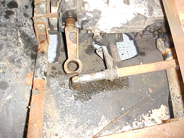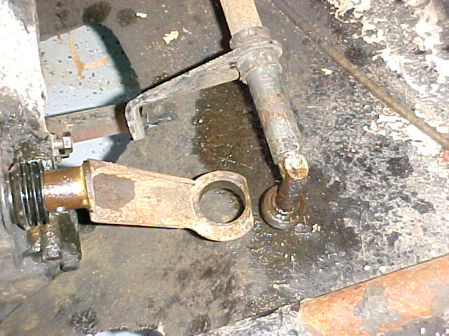 S1A - Removed the circlip from the shift mechanism but the control shaft was frozen into the rose joint so I removed the rose joint ball from the bracket. I still need to remove the vertical bolt from the bell crank bracket on the engine timing cover when I get the car up on jackstands. Sprayed the engine mount bolts, suspension unit bolts and rear chassis cross member bolts with Kroil so they will be easier to remove.