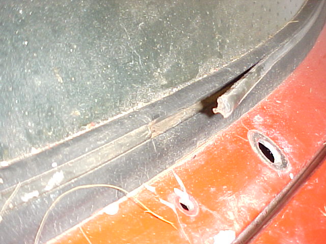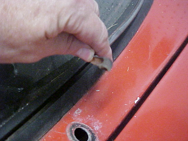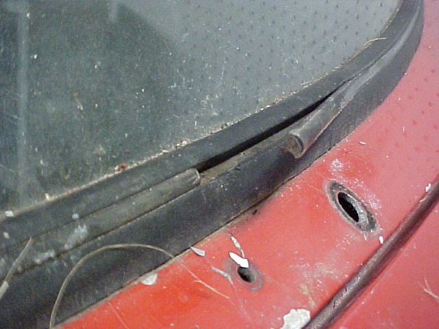 Took some photos of the windshield rubber surround and the locking strip for future reference.
