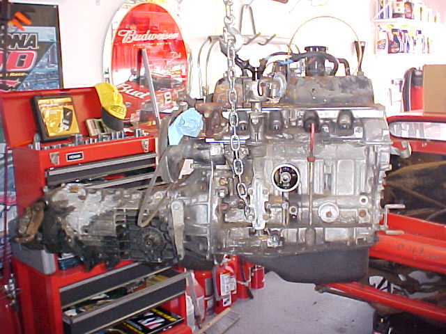 Disconnected everything else from the engine and pulled it today. Next is to disassemble the rear suspension.