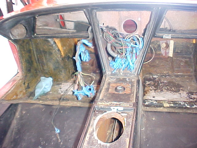 S1A - Disassembled and removed the shift mechanism, windshield, rear window, door strikes, choke and heater cables, demister vents and heater. Just a few more items to come out then time to do the frame.