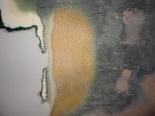 cracks. Under the vinyl was glue, black, BRG, primer, gelcoat.