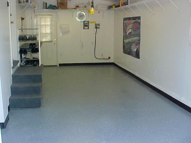The Garage is finally done! Just over 6 months from start to finish. Installed the Cove Base this morning and adjusted the overhead door to close onto the new floor. The new floor looks pretty good against the black Cove Base.
