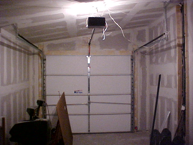 Installed the retracting trouble light and retracting extension cord. Stapled all garage door wiring to the sheetrock and permanently attached the inside door opener control.