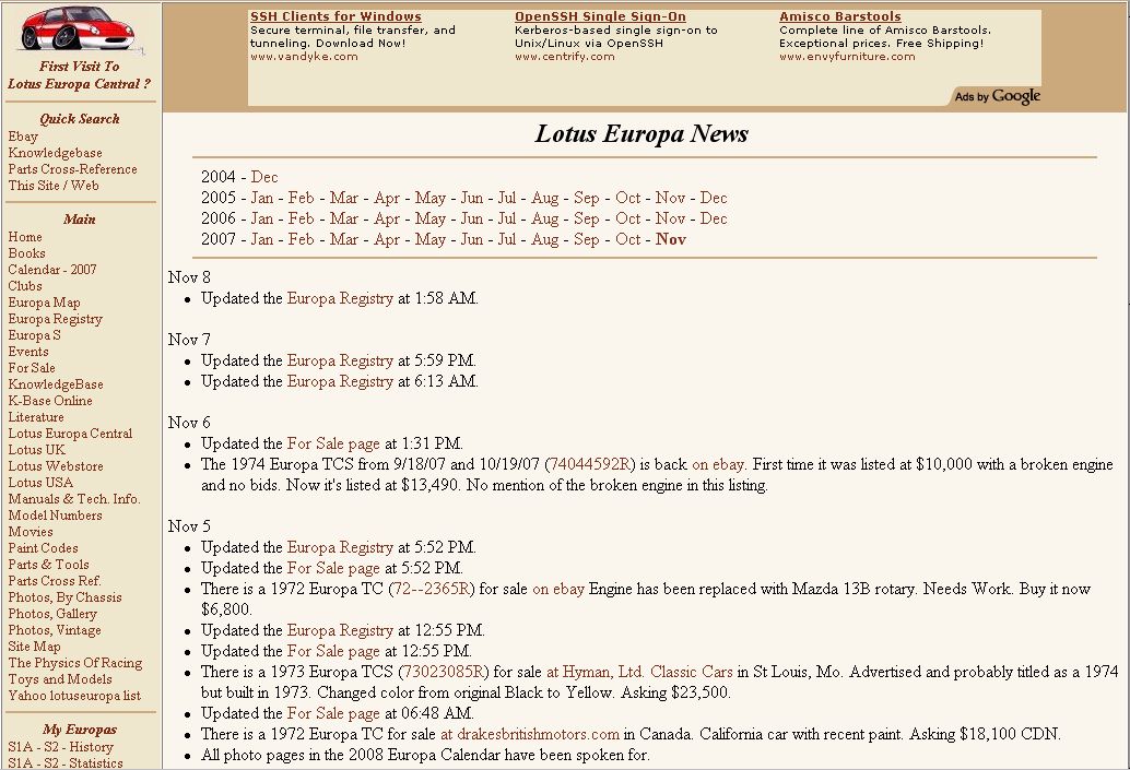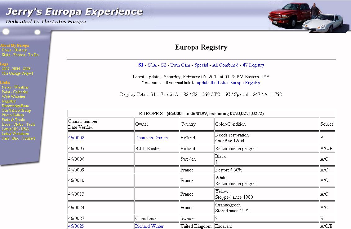 - Feb: Purchased hosting and registered the name lotus-europa.com.