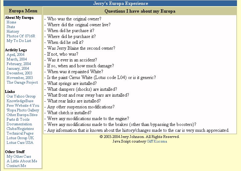 - I purchased my First Europa on November 8, 2003 and immediately started a web site called "Jerry's Europa Experience".