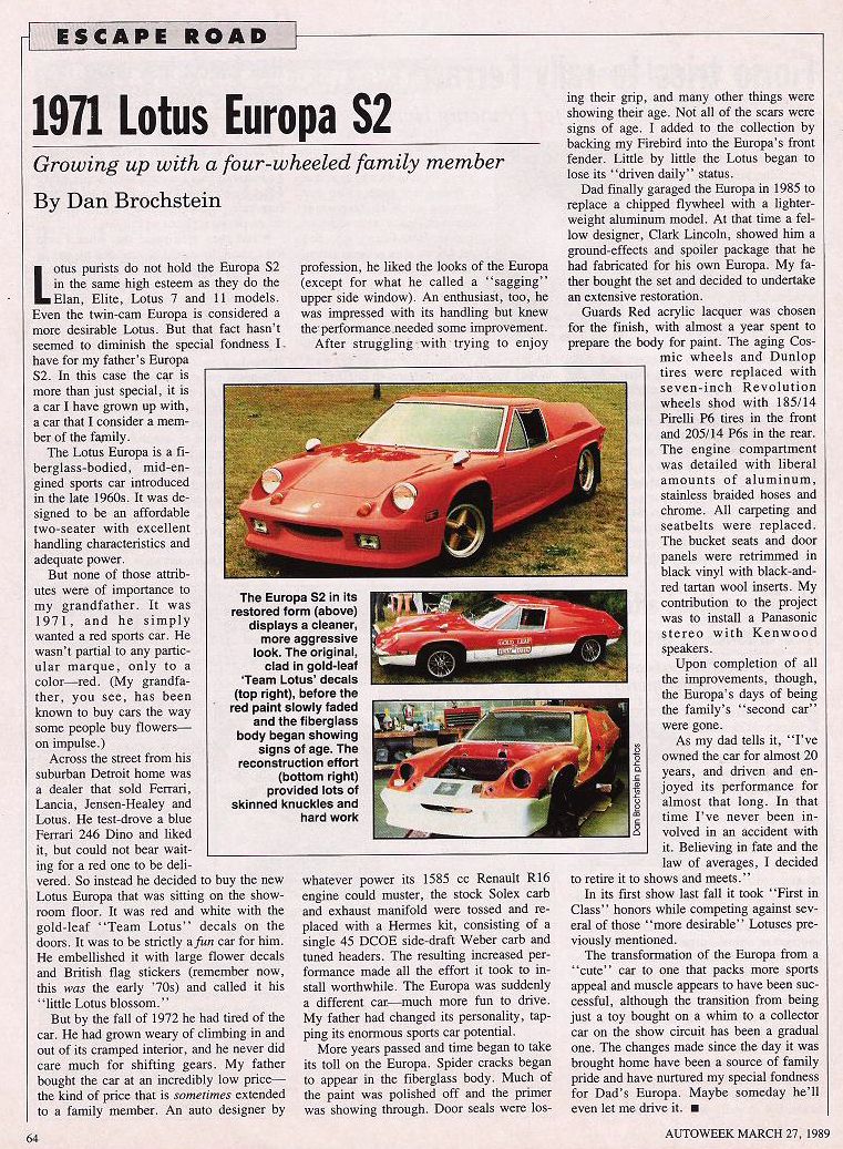 - 1974 - Roadtest - Lotus Europa - Thanks To: Bryan Boyle