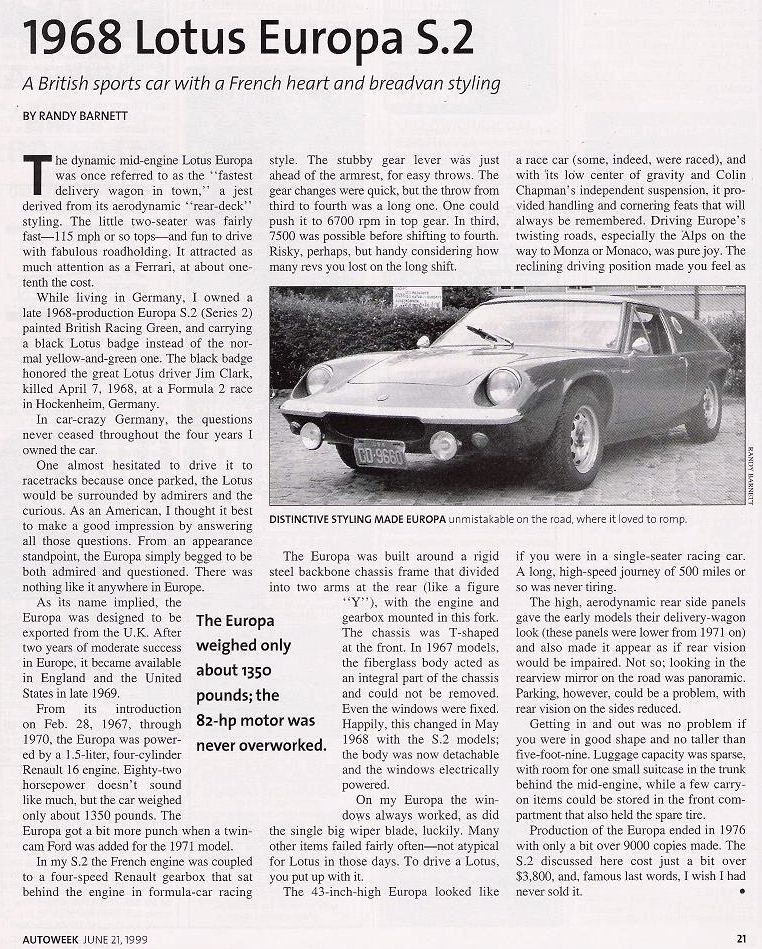- Lotus Europa ad - Autovisie Magazine 26/6/67 (Dutch) - 211K pdf- Thanks To: Haico van der Heijden