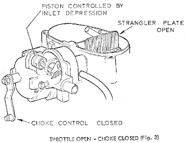 carburetter. Excessive depression, acting on the override control in the carburetter,
