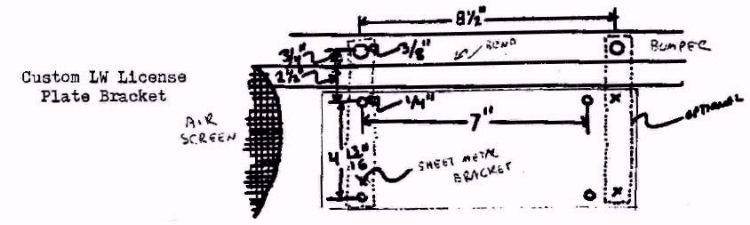 I've seen a number of Lotus Europas with their front license plate mounted over the air intake screen for the radiator. Since a number of states require us to hang front tags, I thought there must be a better way. Well there is a rather simple and cheap and nice looking alternative to the screen. By carefully removing the left (driver side) front bumper nuts from inside the car and loosening the right side a bracket can be slid into the space. This will hold the plate in a position which will not restrict air flow and does not look bad.