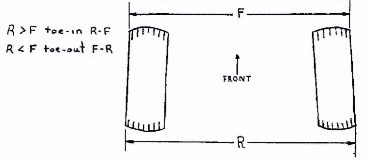 .... Just what is toe-in? It is the distance that the front of the wheels point inward. Toe-out is the distance the front of the wheels point outward (in the direction of vehicle motion).