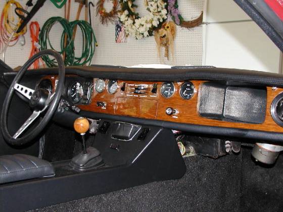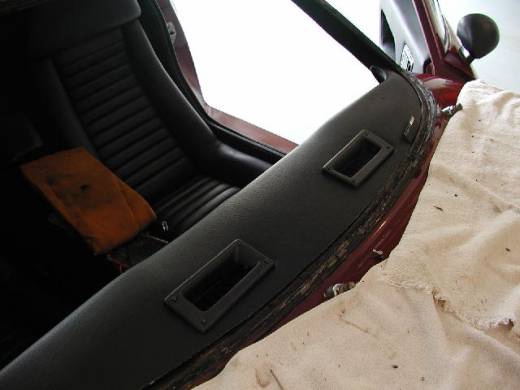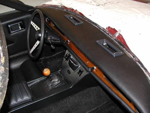 8) Installed newly upholstered lower pad, reattached lower corner brace bolts, then refitted console and wheel.