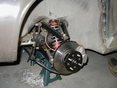 Suspension Europa's are prized for their great handling, which depends on the suspension. Not only had my car been sitting outside for some time, but all of the nearly 30 year old rubber parts had pretty much rotted away. This warranted a complete rebuild of both the front and rear suspension. The front suspension was pretty easy. Removal of the upper pivot pin was a pain, but judging from the horror stories I hear about them rusting to the chassis, mine was a breeze. Luckily, everything was in good shape. I bead blasted all the parts and painted them. The expensive pieces (A-arm halves) were coated with POR-15; the other parts were painted with epoxy spray paint. New parts include bushings, tie rod ends, upper ball joints, trunion bushings, steering rack boots, wheel bearings, vintage Koni shocks, and modified springs. The "modified" springs are actually the stock springs, cut down 1.5" to lower the car. I also used aerospace nuts and bolts where possible - there will be a chart detailing what sizes I used at the end. A note about the trunion bushings - they are polyurethane, which replaces the entire plastic/metal thing. There is no performance gain from the polyurethane, only less maintenance as they do not need to be greased regularly. The rear suspension was a little more difficult, as the bearing/stub axle/drive shaft arrangement needs special attention when being rebuilt. There are a lot fewer parts on the rear suspension versus the front, but extra care is needed to put everything back together properly. The old parts were in good shape, just a bit dirty. The radius arms were bead blasted and painted with epoxy spray paint. The original lower links were bent by towing the car out of its resting place, so these were replaced with new units from Banks, along with new bushings, new wheel bearings, new universal joints, and new shocks. The hub carrier assembly is the delicate part of the rear suspension, and I rebuilt this myself; so far, it works flawlessly, but we'll see how long it lasts. It will fail at some point, but premature failure is evidence of a poor rebuild. Unlike the front suspension, the rear end was not lowered. The new shocks and springs were old stock items from one of the US parts suppliers.