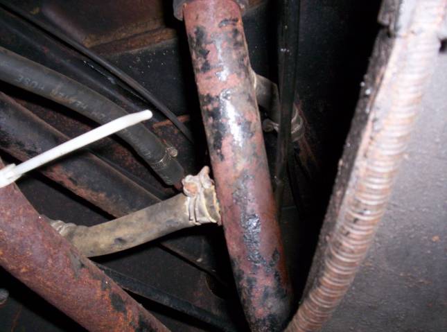 from inlet and outlet tubes behind the dash (almost visible in Photo 20).