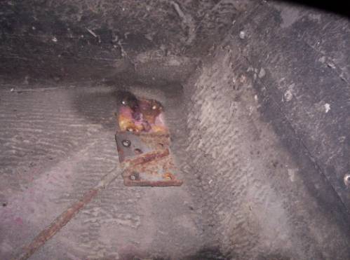 fixed at the firewall with the remaining outboard seatbelt bolt and at the body