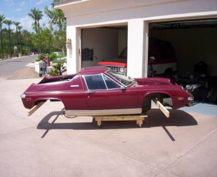 body, across the frame, at the frame mounting points, front and back. See Photo 25. 2X4’s must be on edge to support body weight.