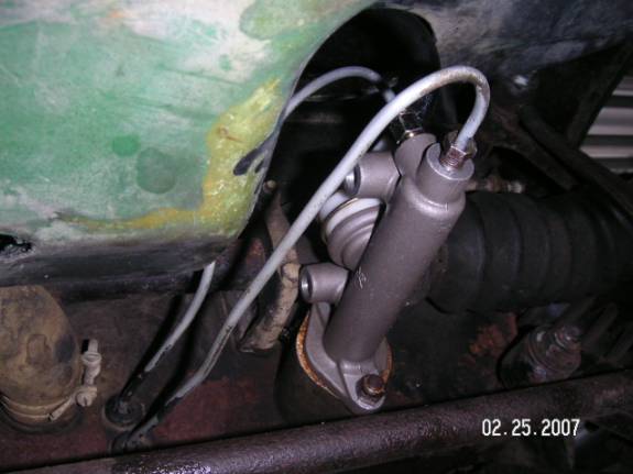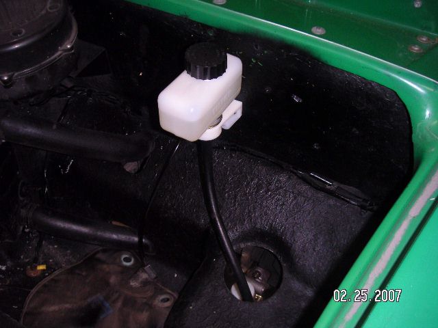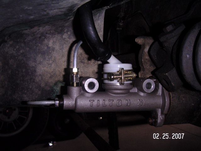 The Tilton kit comes with two reservoirs, plus a remote mounting kit. I chose to mount the large reservoir remotely because it fouled the steering rack when installed directly on the M/C. Picture below.