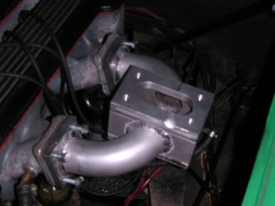 The design was proven, so it was now time to make a more permanent solution. The recent move from Tampa Florida to the Sarasota Florida area put me very close to Steve at Twin Cam Sports Cars in Sarasota. I called up Steve, and discussed my car with him. We agreed for me to deliver the car to him, and he would follow my design of manifold using my DGV carb, but build a more permanent solution. Two weeks after delivering the car to Steve, he called me and said come and drive it. Steve had built a manifold that allowed the air/fuel mixture to flow nicely, and stay atomized. (My square plenum was causing fuel puddeling.). I drove the car and it was excellent. Smooth idle, excellent power delivery, and when the second choke opened, it was fast! Steve and I both agreed that a horsepower increase was evident over the Strombergs.