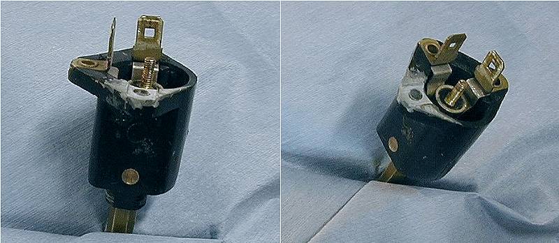 Next I mounted the contact and connector lugs to the switch body with the screw. I used a flat washer and a lock washer under the nut. You will probably have to grind some metal from the side of the washers to clear the switch body as shown in figure 6. Figure 7 shows the completed assembly.