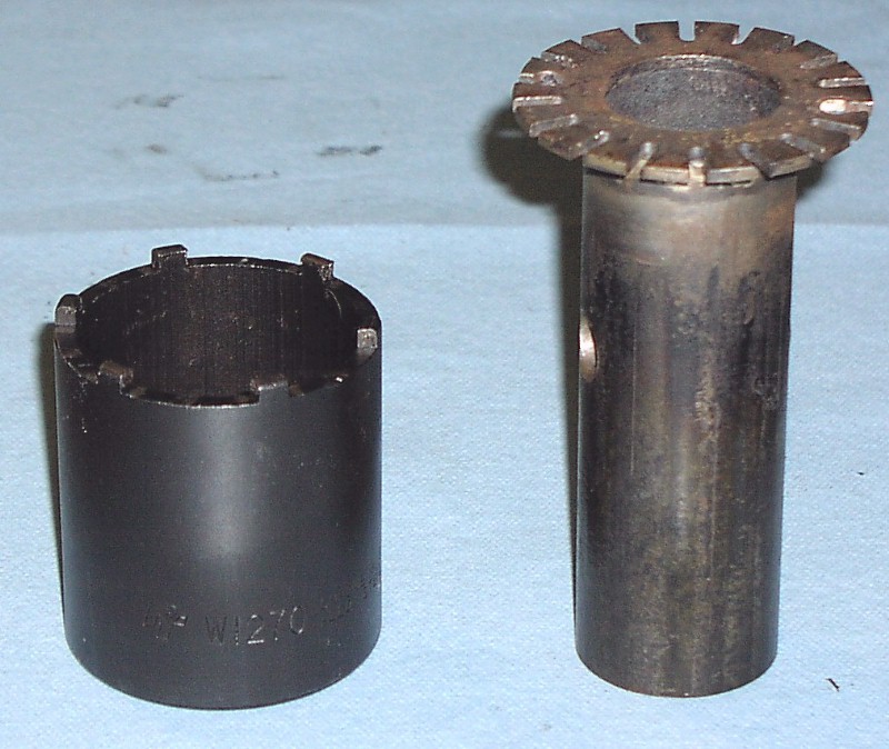 Other views of the tools. Note that the W1270 has a square drive for a half inch ratchet handle or breaker bar. The other tool has a hole to stick a bar through. Since it has 18 positions, only one hole is needed.