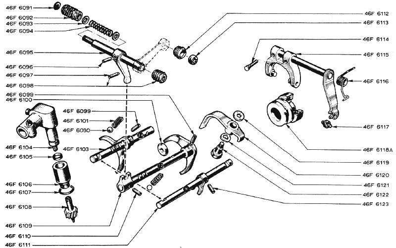 | 46F6109 | 46F6109 | 1 | 1 | Selector Shaft with fork 1st. & 2nd. Speed (Type 336-08) | |||||||||