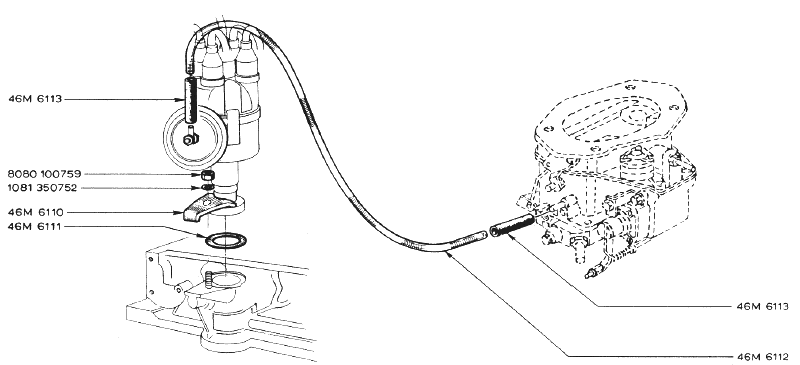 | 46M6112 | 46M6112 | 1 | 1 | Hose - Vacuum - Distributor to Carburetter |