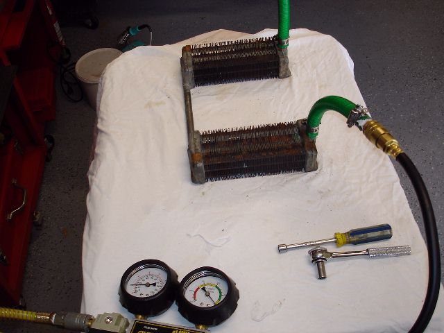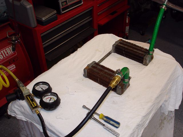 S1A - Straightened the heater fins and pressure tested the core. Used my leak-down tester to pressurize the core to 20 psi and did not observe any leakage. Submerged the unit in water for a bubble test. Reassembeled the heater so no parts get lost and put it away for later use.