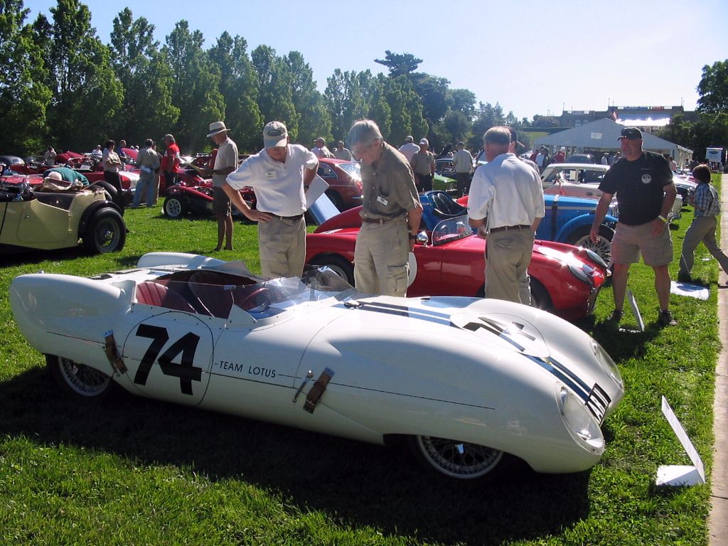 Vic Elford, center, judging a Lotus 11, with a Red Berkley in the background.