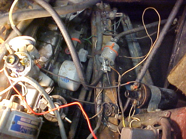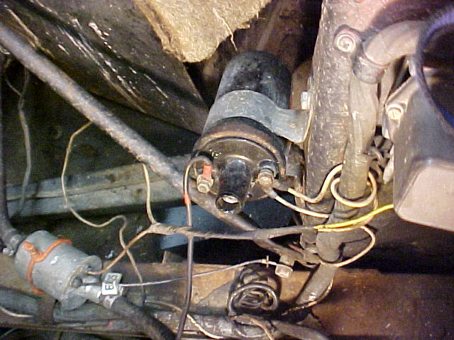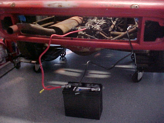 S1A - Today I bought a battery at Advance Auto Parts. I also bought two 36" battery cables and used them to extend the existing cables so I could put the battery on the garage floor. After I removed all of the spark plugs and the rotor cap with the cables attached (being sure to mark the cables) I connected some jumper wires to the starter solenoid and the battery connection on the starter so I could operate the starter from the engine compartment.