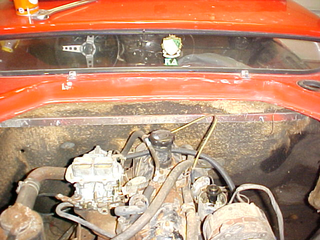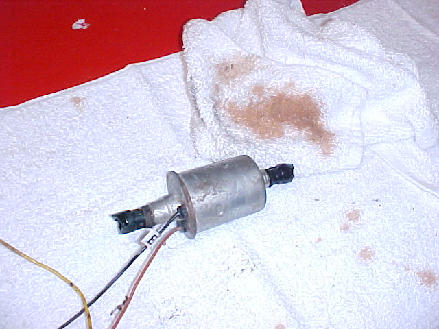 S1A - Got up early this morning and removed the gas tank. First I removed the right seat belt shoulder strap brace, coil and electric fuel pump to make room for the tank to come out. Then I removed the two nuts on the bottom of the fuel tank (under the car) and the filler neck. After wrestling with the tank for a while it finally came out (would have been easier if I had drained it first).