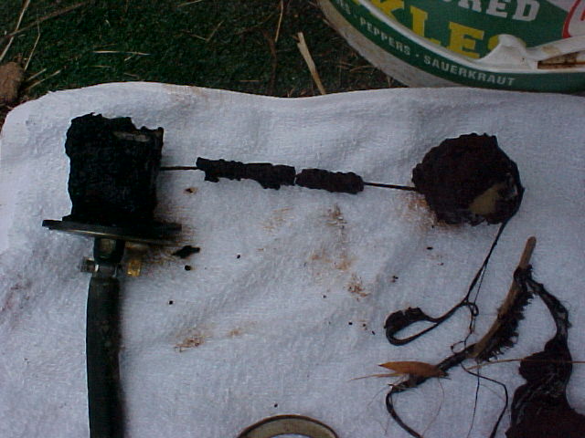 S1A - Removed the fuel level sender unit from the fuel tank and found that it is coated with a thick layer of black tar-looking substance. Must be congealed fuel from 20+ years of sitting. Cleaned and disassembled the sender and found the resistor inside coated with the same substance. Checked the resistance value and it's very intermittent. A check of the Knowledgebase shows that the resistance should be about 15 ohms full, 60 ohms 1/2 full and 250 ohms empty. Will determine what to do with the unit later.