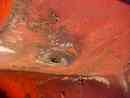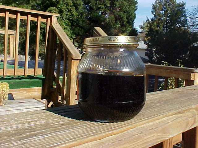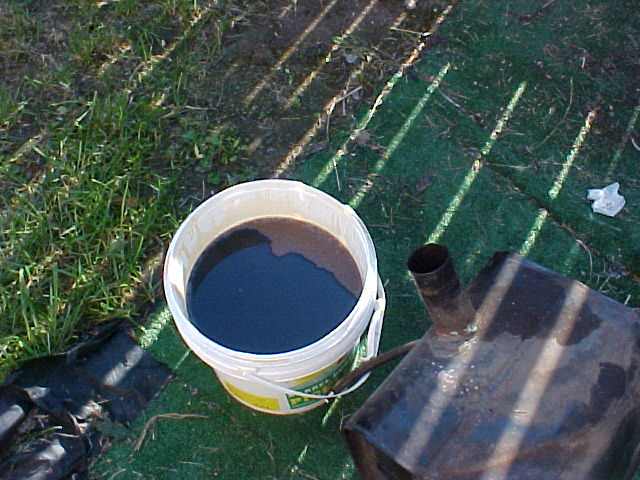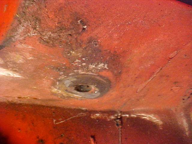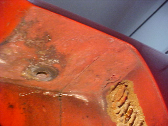 It's amazing what 20 years old fuel looks like! Sort of the color of very dark molasses and really nasty smelling. Doesn't smell like gas at all. I noticed that there are two pinholes in the side of the tank where there was gas seeping out. The tank is full of rust and will either need completely rebuilt or replaced.