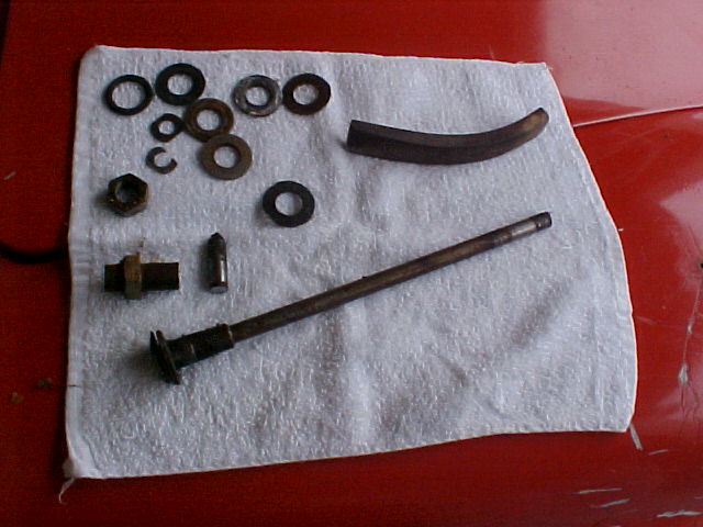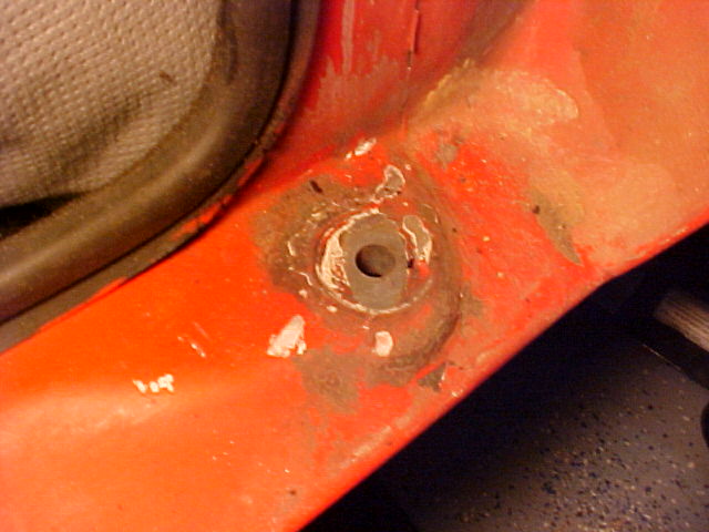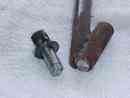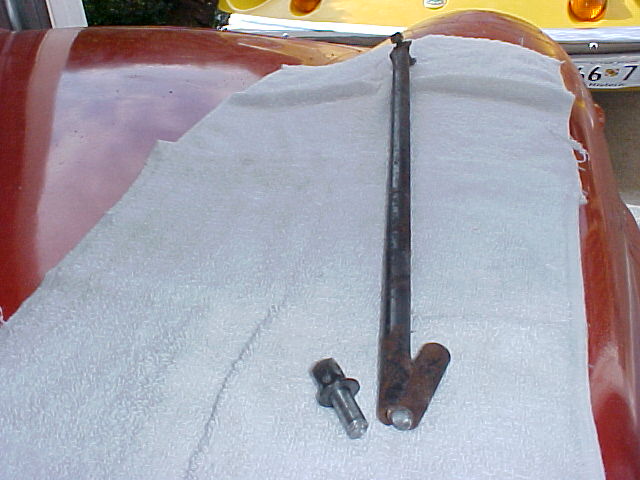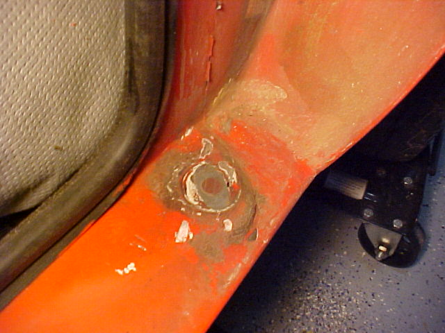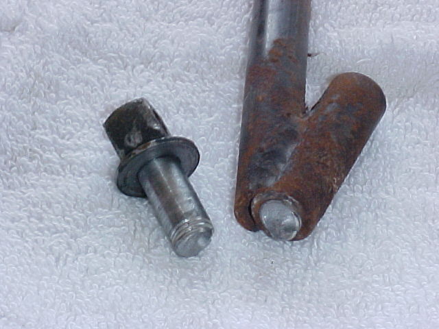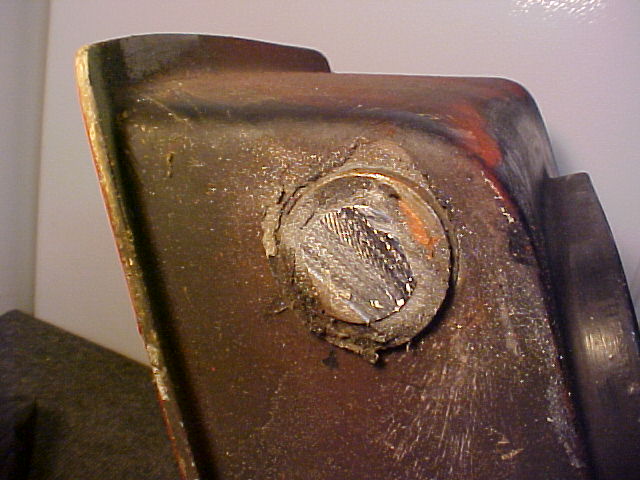 When I tried to remove the piece of bottom pin that remained in the bobbin it fell into the sill of the car so I will have to determine a method to remove it when I remove the frame or I'll have a constant rattle. The piece of the top pin was easily removed by grabbing it with vise grips and working it out.