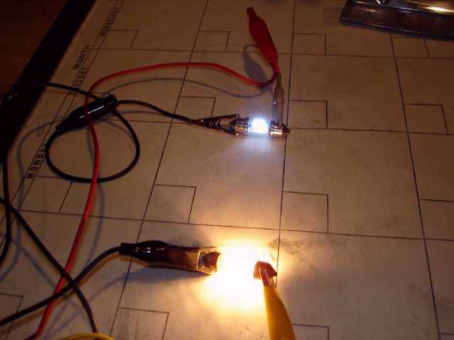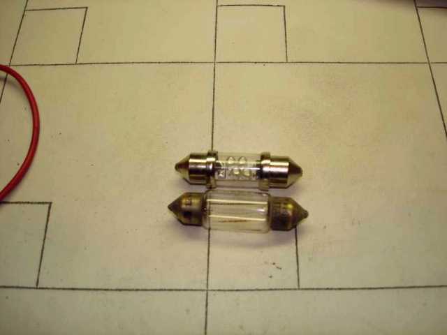 Yesterday I received the 3610-W4 LED Festoon bulbs I ordered from superbrightleds.com. Today I installed one in the interior lamp from 460355 to check for fit and brilliance. The fit is good, and while brilliance is slightly less, the light produced is much whiter. The incandescent bulb that was in the lamp is marked "12V5W" (37mm long) and draws a measured 470 ma at 12V, while the 3610-W4 (36mm long) draws 30 MA at 12V. The incandescent bulb gets very hot but the LED bulb stays at ambient temperature.