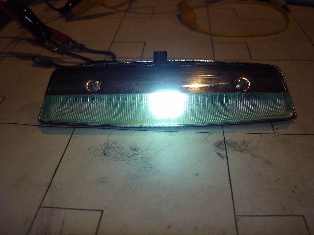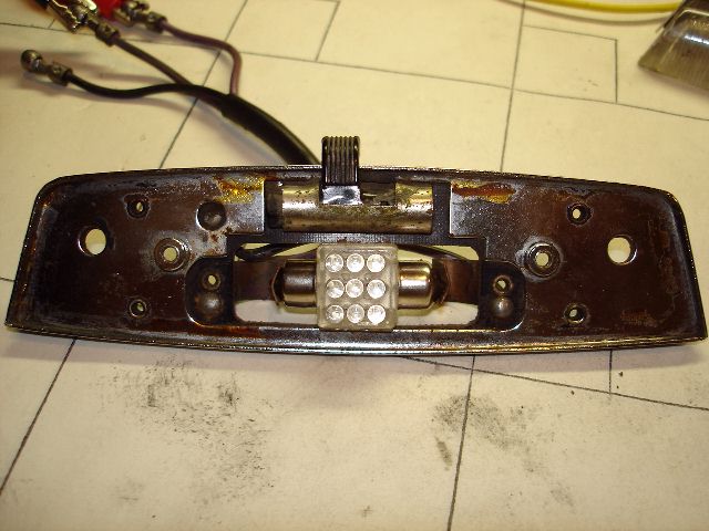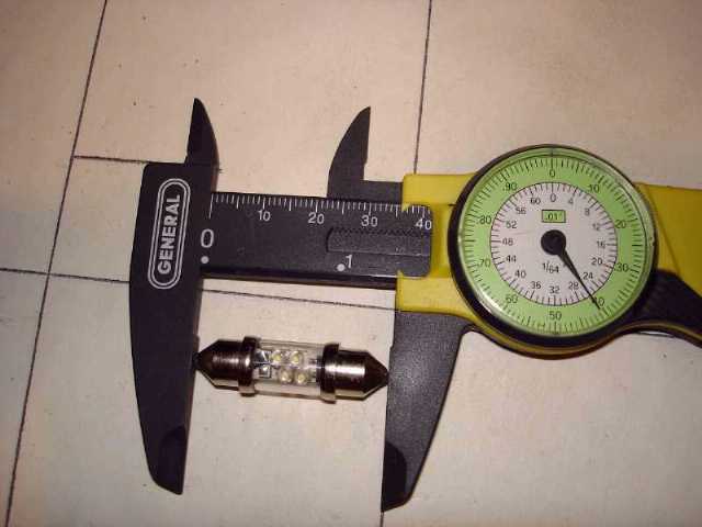 I also installed one of the LED bulbs in the license light, which had a bulb marked "12V6W" (38mm long), and there is very little difference. The license light from 460586 had a bulb marked "12V15W" and it is much brighter, but it is also 43mm long and the lamp fixture was damaged when the PO bent the contacts to fit. I also ordered two of the 3910-4W (39mm long) LED bulbs but they are too long to fit either fixture.