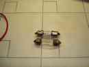 Today I received the 3022-W9 LED Festoon bulbs I ordered from superbrightleds.com and installed one in the interior lamp from 460355 to check for fit and brilliance. It was necessary to slightly file the phenolic attached to the rear of the fixture to make the bulb fit and the contacts needed adjustment to contact the 30mm length but I think this is the best solution for festoon lamps. The incandescent bulb that was in the lamp is marked "12V5W" (37mm long) and draws a measured 470 ma at 12V, while the 3022-W9 (30mm long) draws 75 MA at 12V. The incandescent bulb gets very hot but the LED bulb stays much cooler.