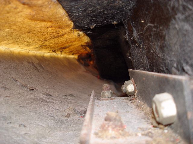- Four bolts at the top of the dash. The two outermost have nuts while the others screw into threaded bobbins.