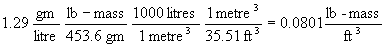We need to convert 1.29 gm/l to pounds of mass per cubic foot so that we can