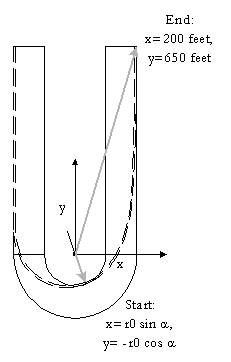 Cornering radii vary from 150 feet to 200 feet, and the track is 100 feet wide