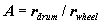 Wheel RPM is directly proportional to drum RPM, assuming the longitudinal