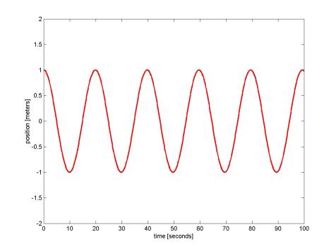 or about 98 Newtons or 22 lbs; k = 1 N/m. We expect the period to