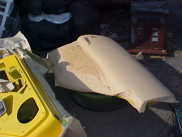 Stopped by the body shop today to check on progress. They completed all bodywork and sanding and have ordered DuPont Uroprime primer/filler. They will shoot the entire car with the primer/filler, sand, seal then spray the Millennium Yellow base and clear coats. Looks like it will be finished the week after next if all goes as expected.