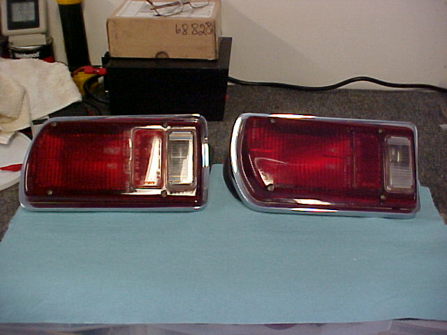 Received the used taillights from Matt Wilder today. The chrome appears to be excellent and the green paint overspray is loose so it should polish off. Will work on them tonight or tomorrow morning.